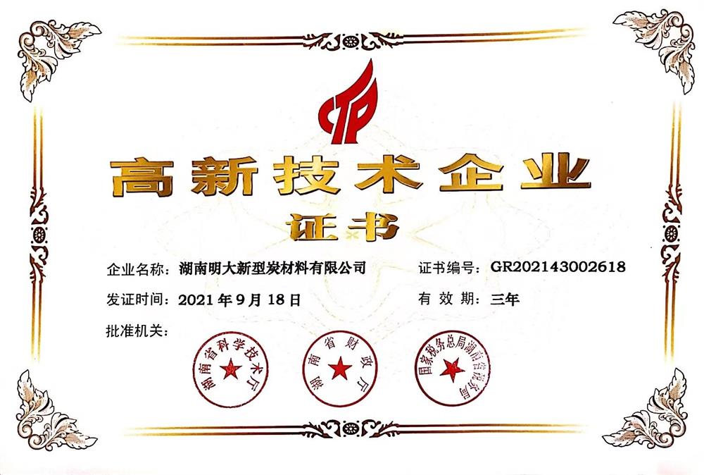 湖南省新材料企业认定证书