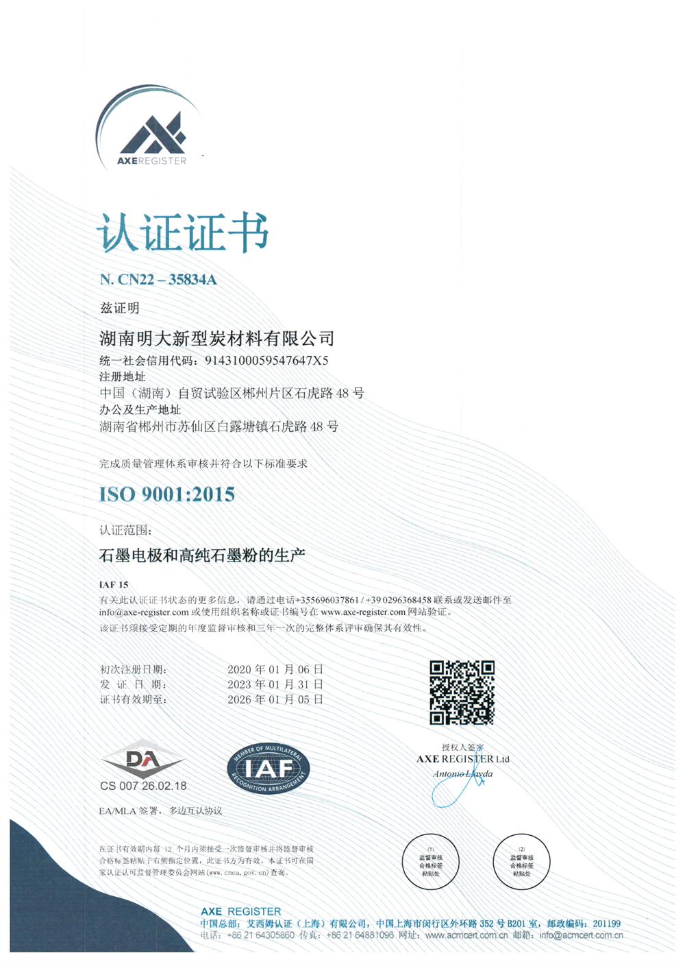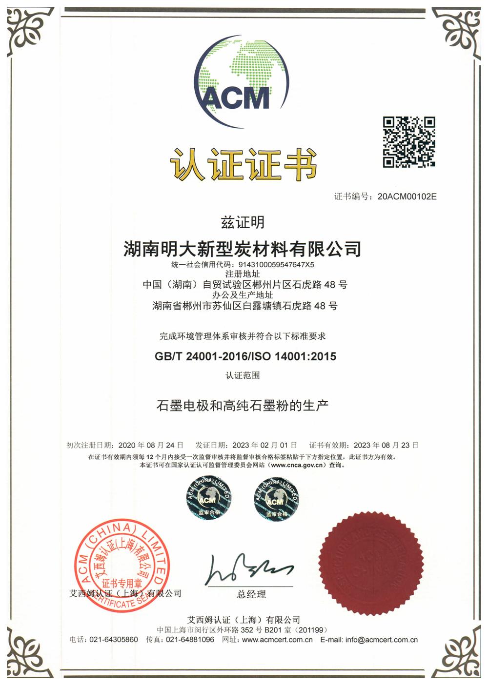 环境管理体系证书